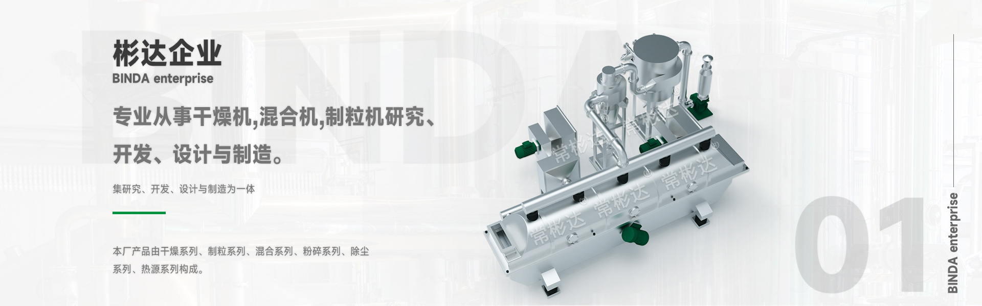 常州市彬達(dá)干燥制粒設(shè)備有限公司,坐落在風(fēng)景優(yōu)美、交通方便的鄭陸鎮(zhèn)焦溪古鎮(zhèn)附近,我司成立于2007年,專(zhuān)業(yè)從事干燥機(jī)、混合機(jī)、制粒機(jī)研究、開(kāi)發(fā)、設(shè)計(jì)與制造。
