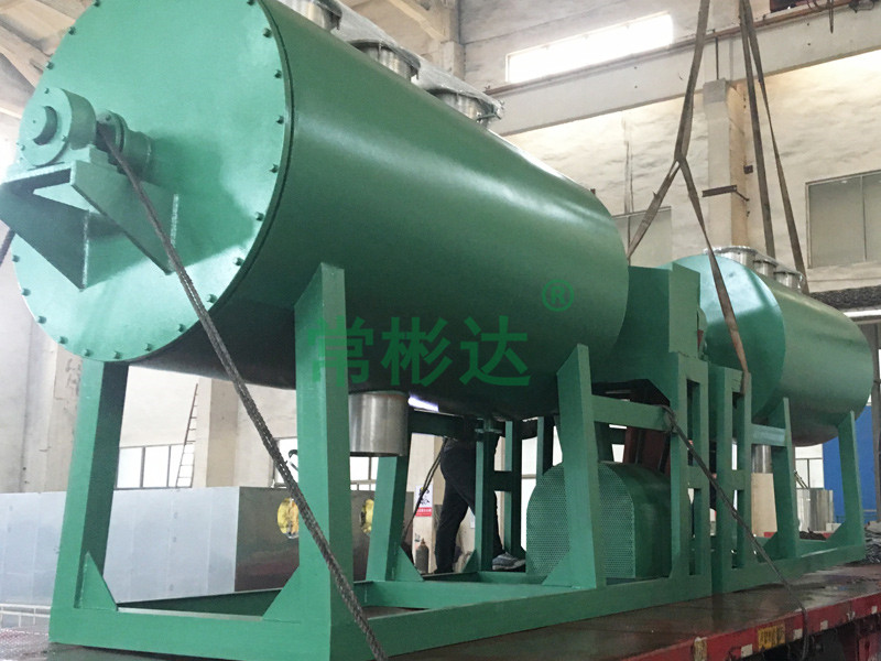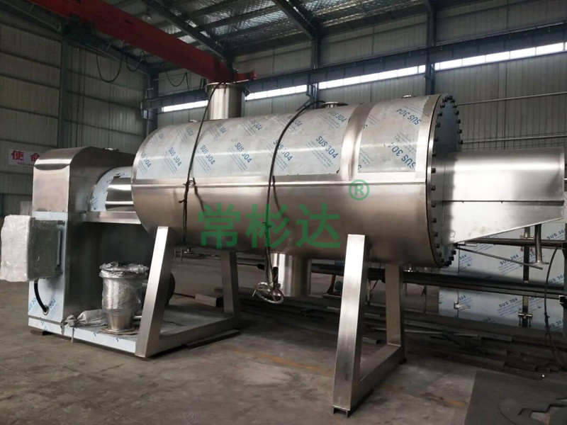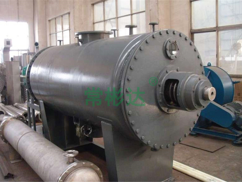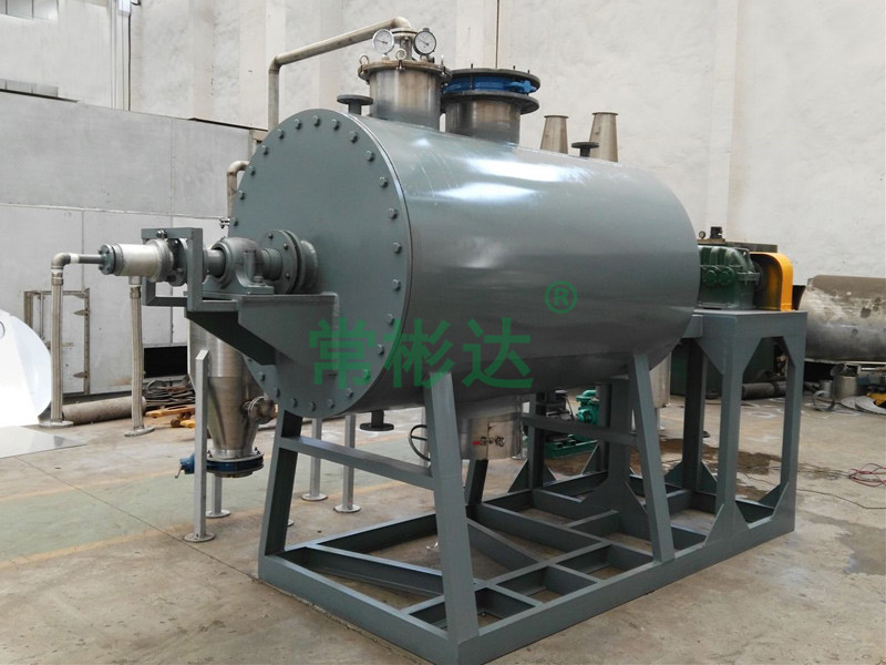 本機是一種新穎臥式間歇式真空干燥設備,濕物料經傳導蒸發,帶有刮板攪拌器不斷清除熱面上的物料,并在容器內推移形成循環流,水份蒸發后由真空泵抽出。