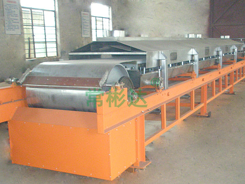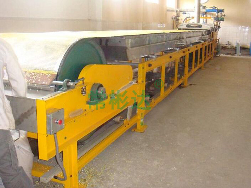該機由液體變固體粒狀,主要是通過造粒模頭造粒,采用回轉式鋼帶連續進行,通過噴淋水冷卻定型。