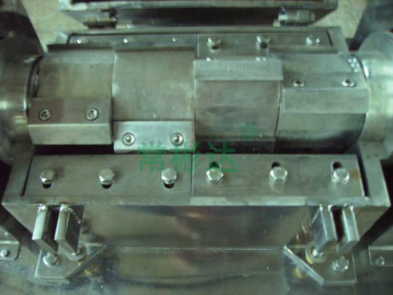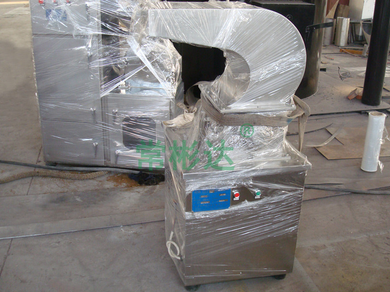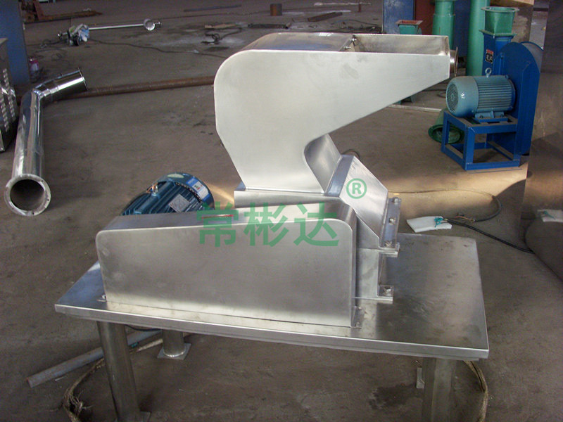 ??物料由進料斗送進粉碎室,經刀刃和刀座的沖擊,旋轉刀和固定刀同時剪切粉碎,由于受到旋轉離心力的作用,物料自動從出口處流出。
