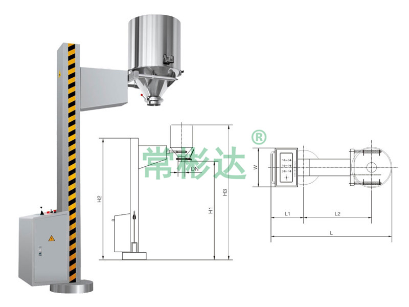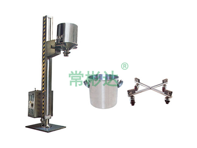 ??TJG 系列固定提升加料機由兩部分組成,即提升機及底座。提升機由機架、液壓提升系統及料門翻轉機構組成。工作時,先將提升機的料門與料桶扣合,啟動提升操作桿,料門與料桶一起上升,啟動翻轉操作桿,料桶即可番轉180度,呈底桶向上姿態并移動到所需位置,利用料門上出料蝶閥,可很容易將物料加入所需的工藝設備中。